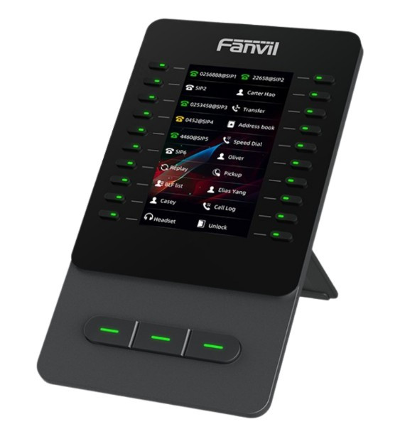El Fanvil EM60 es un módulo de expansión multifuncional con pantalla a color que se puede usar como accesorio para los teléfonos V65/V66/V66 Pro, ayudando a los usuarios ocupados a gestionar llamadas de alto volumen con facilidad. Cuenta con una pantalla a color de 4,3 pulgadas y admite 60 teclas programables, cada una equipada con un indicador LED bicolor.