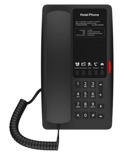 Fanvil H es una serie de teléfonos SIP ideales para hoteles, residencias y complejos turísticos. Ofrece todas las funciones de un terminal VoIP tradicional, junto con las características típicas del sector hotelero: elegancia, facilidad de uso y teclas de acceso rápido programables para contactar con recepción, bar, restaurante, servicio de habitaciones y emergencias con solo pulsar un botón, además de acceso rápido a las funciones adicionales del sistema telefónico del hotel (llamada de despertador, modo No molestar, etc.).